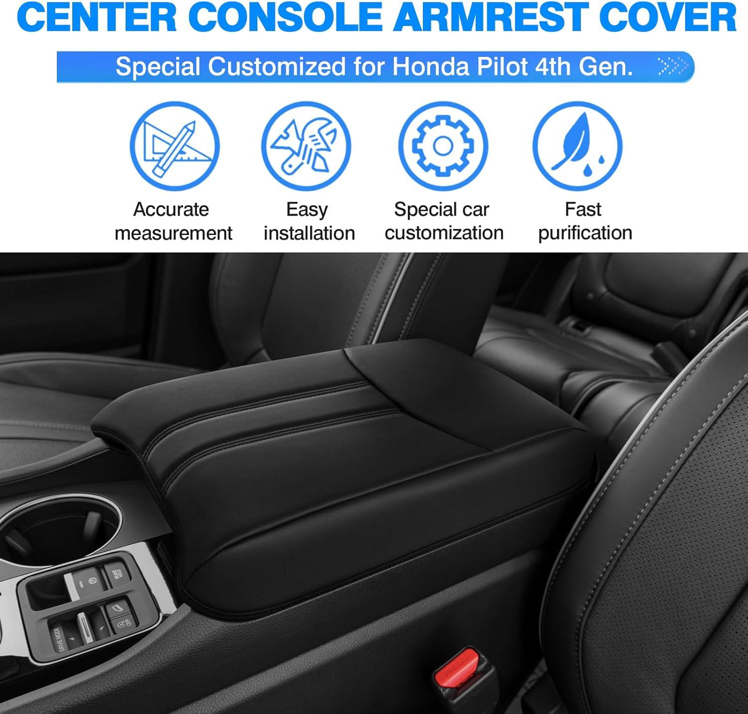 Autorder Center Console Cover for 2016-2020 2021 2022 Honda HR-V HRV Accessories Carbon Fiber Armrest Cover Anti-Scratch Middle Console Pad Leather Armrest Protector(Pilot 2023-2026)