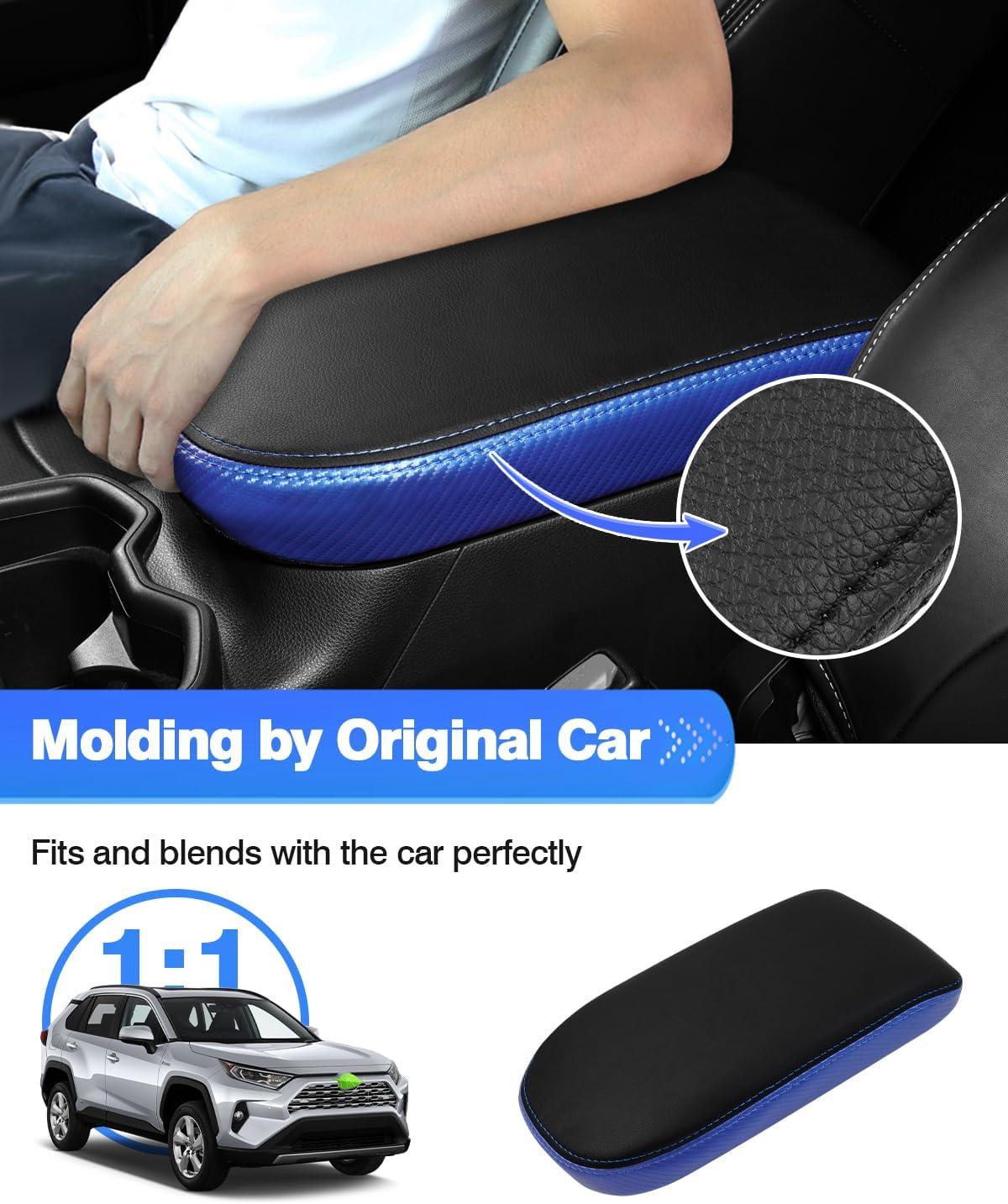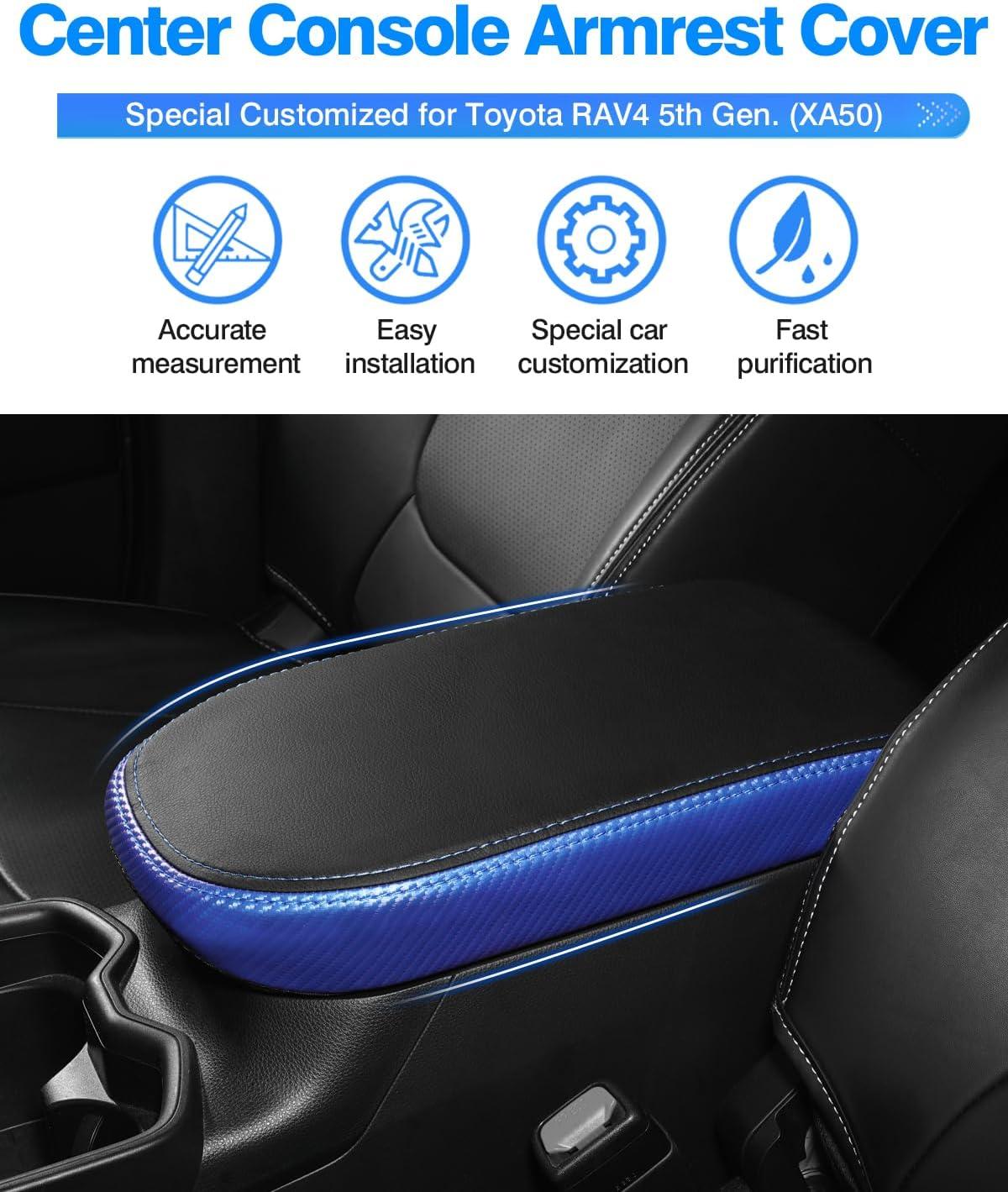 Perfect Matches—The custom-designed center console cover for the Toyota RAV4 2019 2020 2021 2022 2023 2024 2025 fits perfectly without any wrinkles. It can safeguard the armrest box from everyday wear.