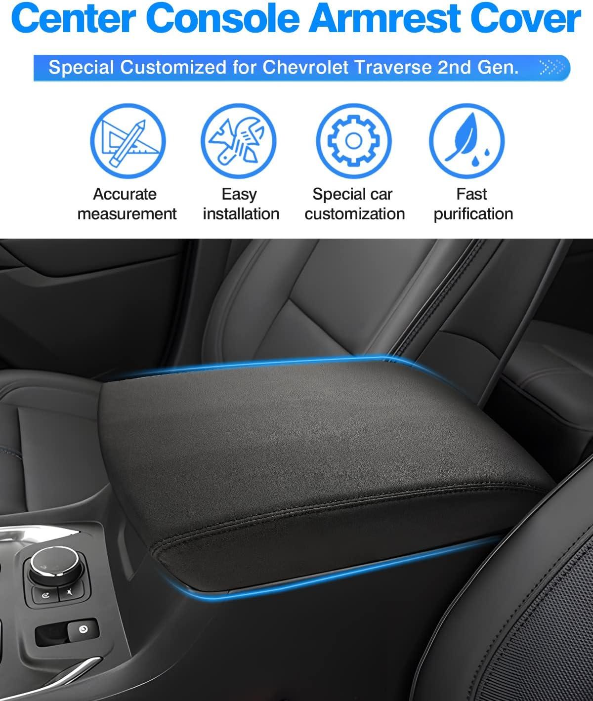Autorder Center Console Cover for Chevy/Chevrolet Trailblazer 2021-2025 2026 Accessories Carbon Fiber Armrest Cover Anti-Scratch Middle Console Pad Leather Armrest Protector(18-24 Chevy Traverse)