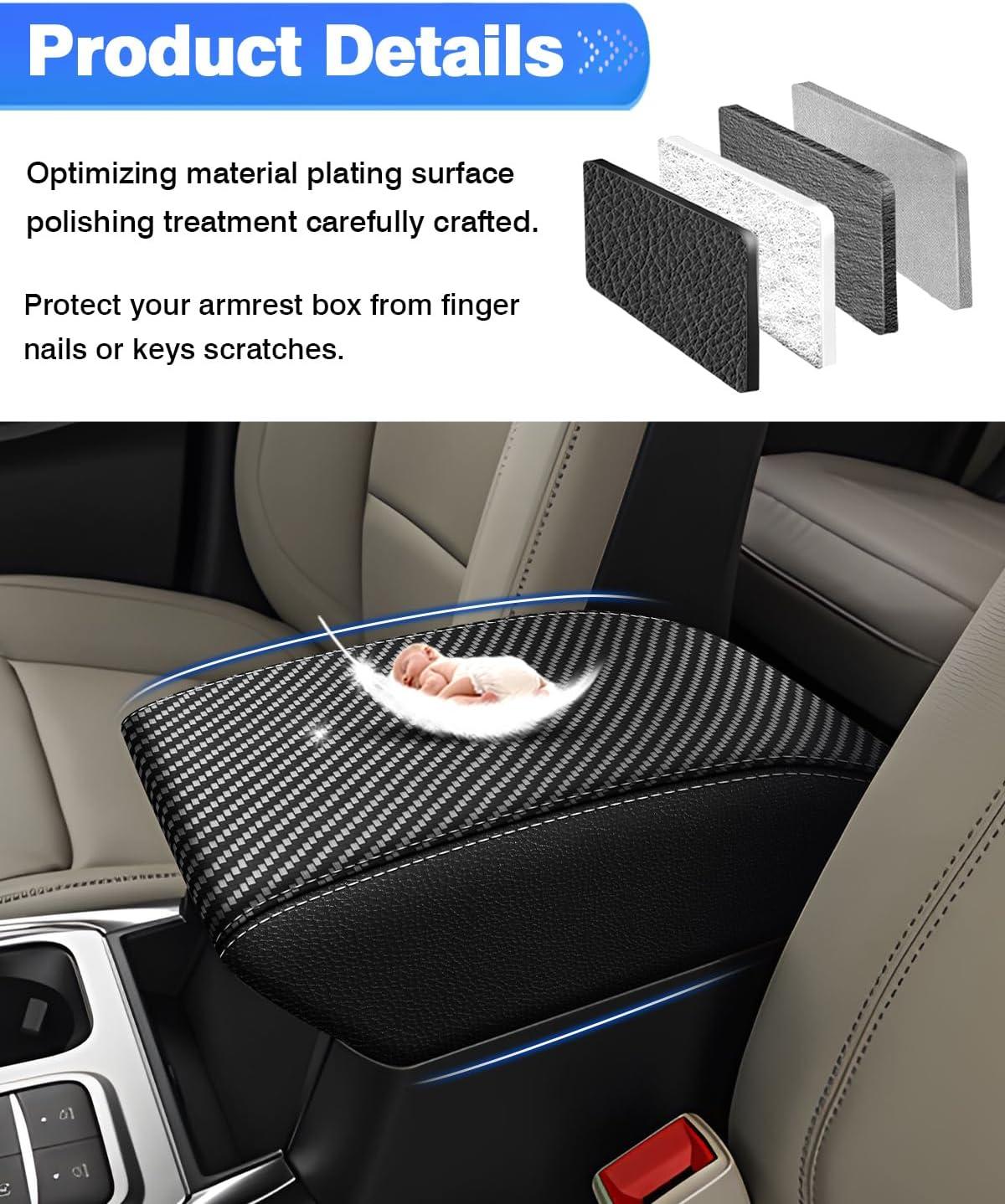 Autorder Center Console Cover for Chevy/Chevrolet Trailblazer 2021-2025 2026 Accessories Carbon Fiber Armrest Cover Anti-Scratch Middle Console Pad Leather Armrest Protector(20-25 Nissan Sentra)