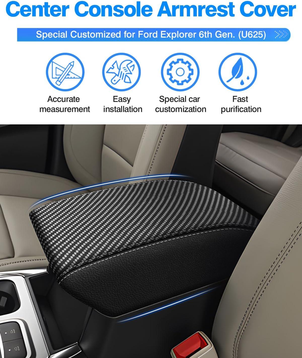 Autorder Center Console Cover for Chevy/Chevrolet Trailblazer 2021-2025 2026 Accessories Carbon Fiber Armrest Cover Anti-Scratch Middle Console Pad Leather Armrest Protector(20-25 Ford Explorer)