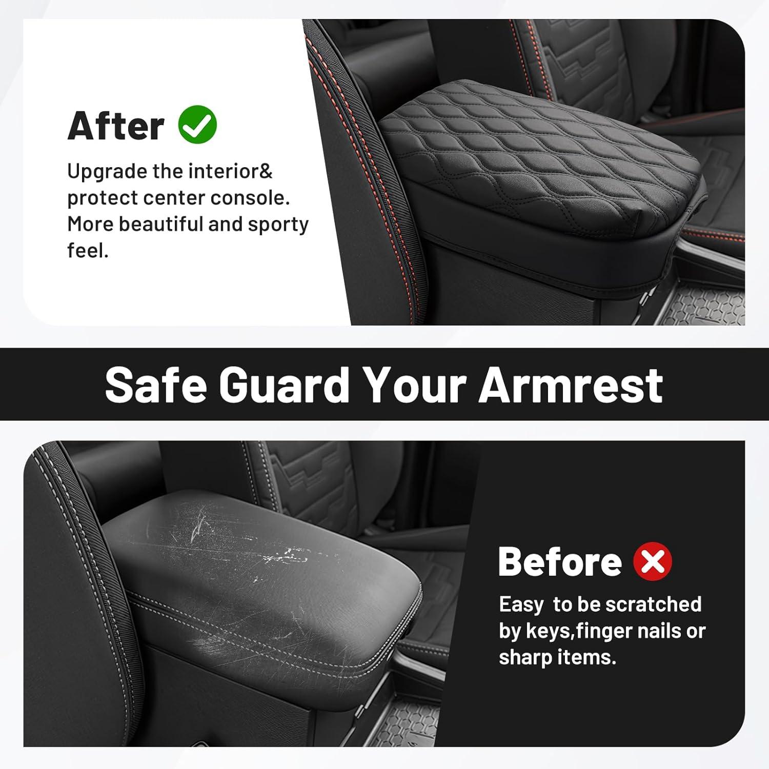 All-round Protection—Protect the armrest lid from scratches and abrasion caused by pets, nails, and sticky fingers. The armrest cover gives you softness to the touch as well as meets your need to keep the middle console clean and brand new.