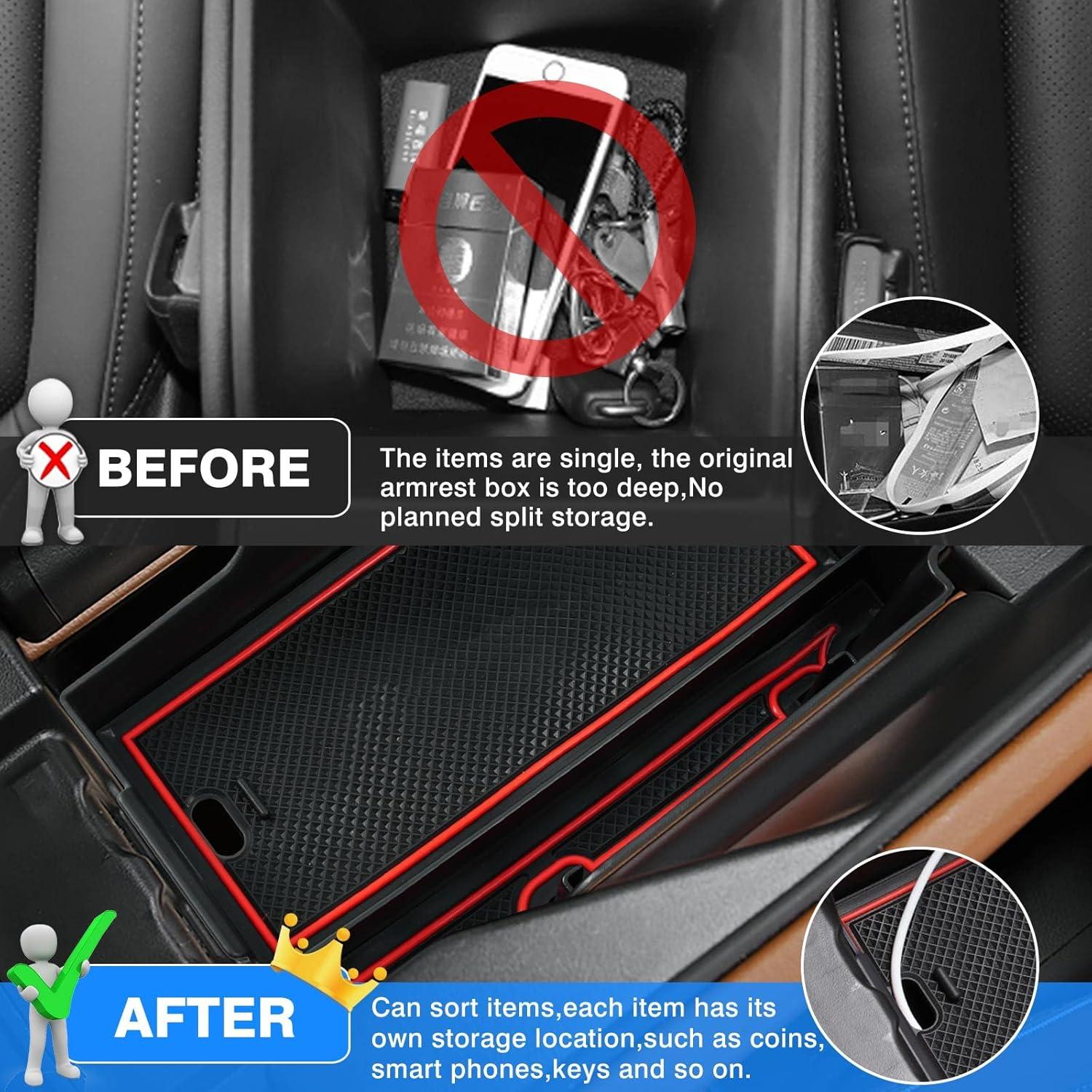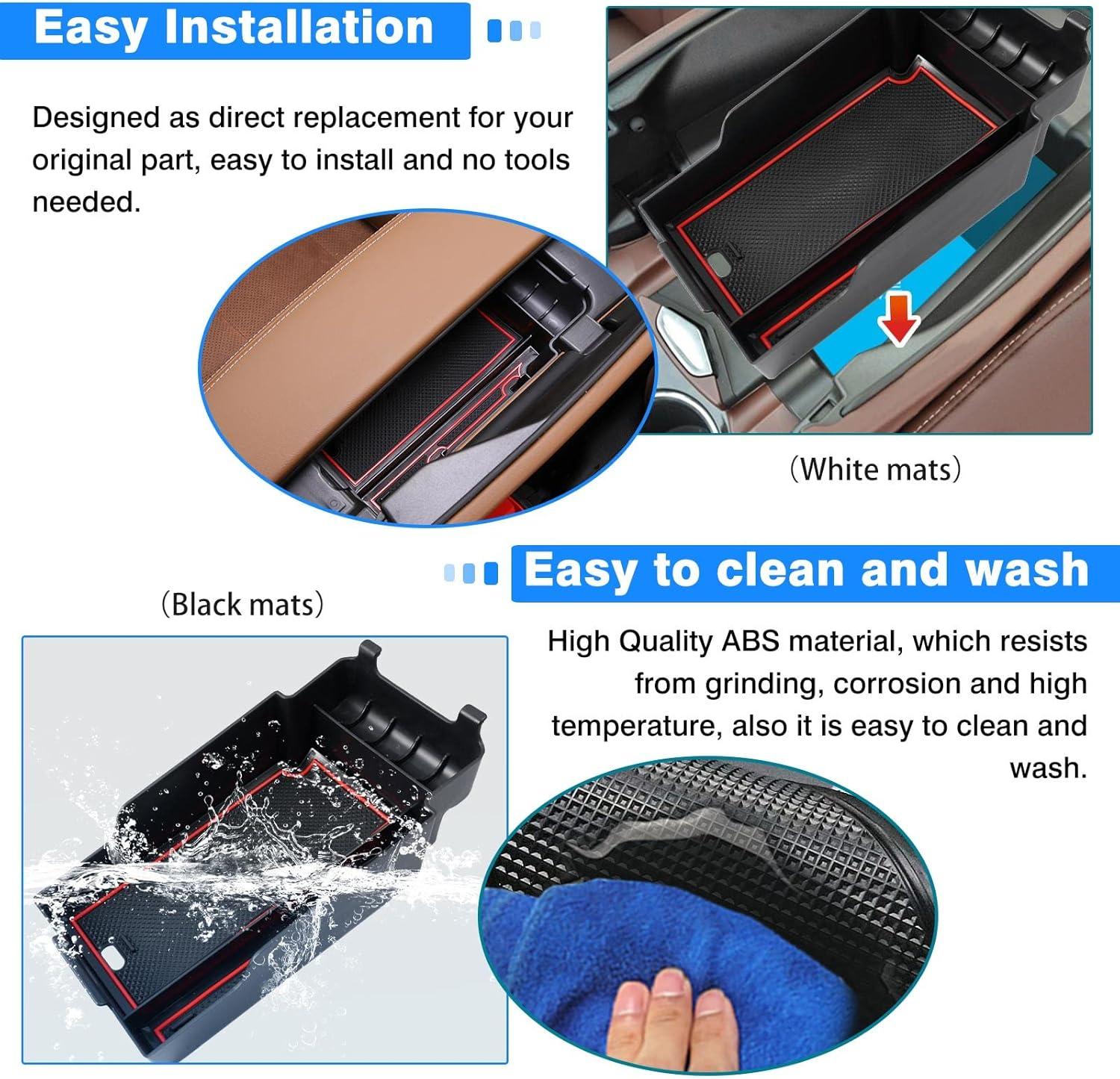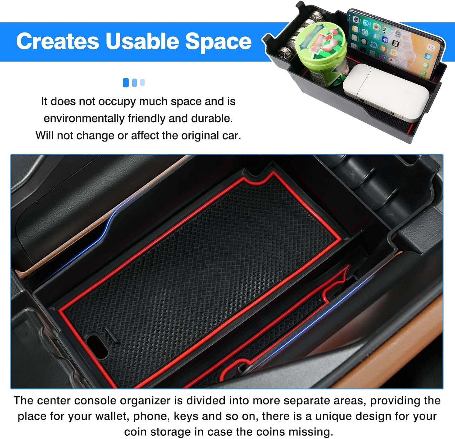 🚗Well-made Organizer—It is made of a durable and sturdy ABS shell. The even edge and smooth surface give the armrest storage box an OEM part appearance. Additionally, the provided tasteless and non-toxic rubber liner effectively prevents items from sliding and rattling.