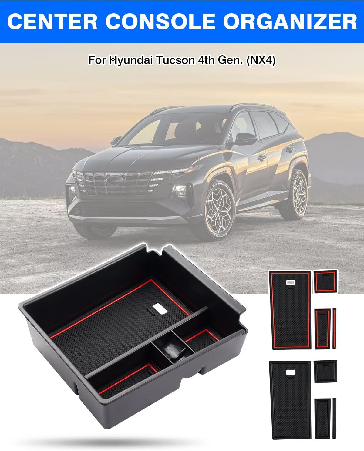 Autorder Center Console Organizer for 2022-2026 Hyundai Santa Cruz Accessories Car Armrest Storage Box Middle Console Tray Container with Black & Red Non-Slip Silicone Mats(2022-2024 Tucson)