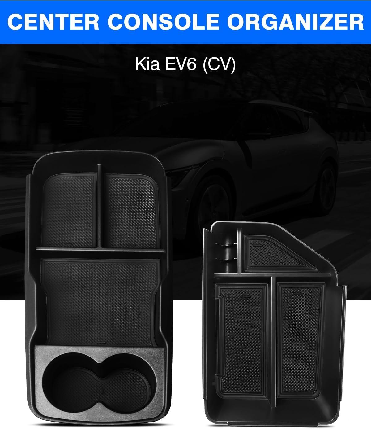 Autorder Center Console Organizer for 2023 2024 2025 2026 Kia NIRO Accessories Gear Shift Storage Box Gear Shifter Insert Tray with Black Mats(2022-2026 Kia EV6 2PCS)