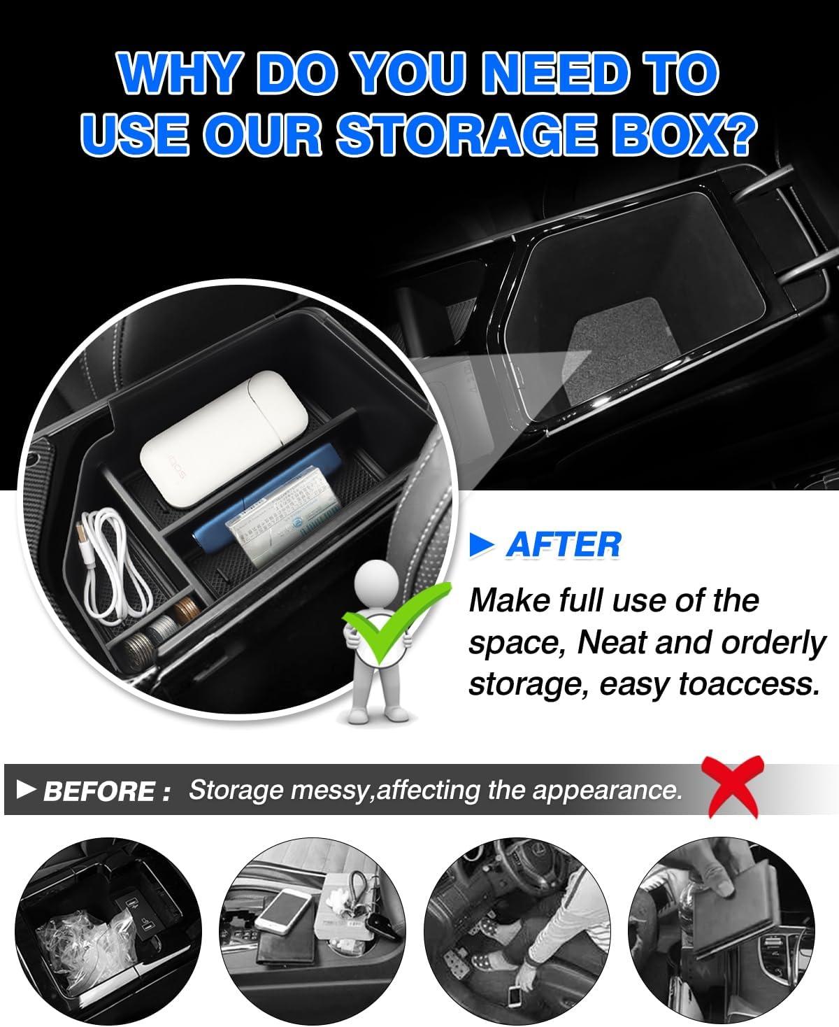 Match Perfectly: Tailor-made according to the original armrest box. The dimensions and curves perfectly align with the interior, ensuring the gear shift storage box inserted into the center console remains firm and stable. So it won't slide or make annoying noises when accelerating, decelerating, or stopping.