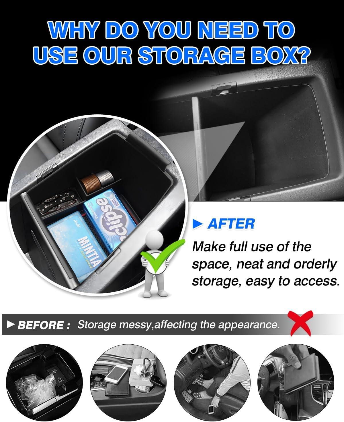 Match Perfectly: Tailor-made according to the original armrest box. The dimensions and curves perfectly align with the interior, ensuring the gear shift storage box inserted into the center console remains firm and stable. So it won't slide or make annoying noises when accelerating, decelerating, or stopping.