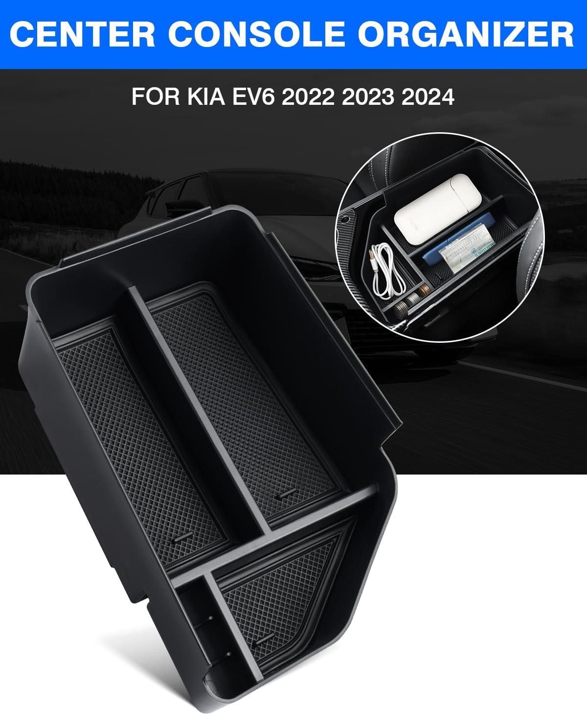Autorder Center Console Organizer for 2023 2024 2025 2026 Kia NIRO Accessories Gear Shift Storage Box Gear Shifter Insert Tray with Black Mats(2024-2026 Kia EV9)