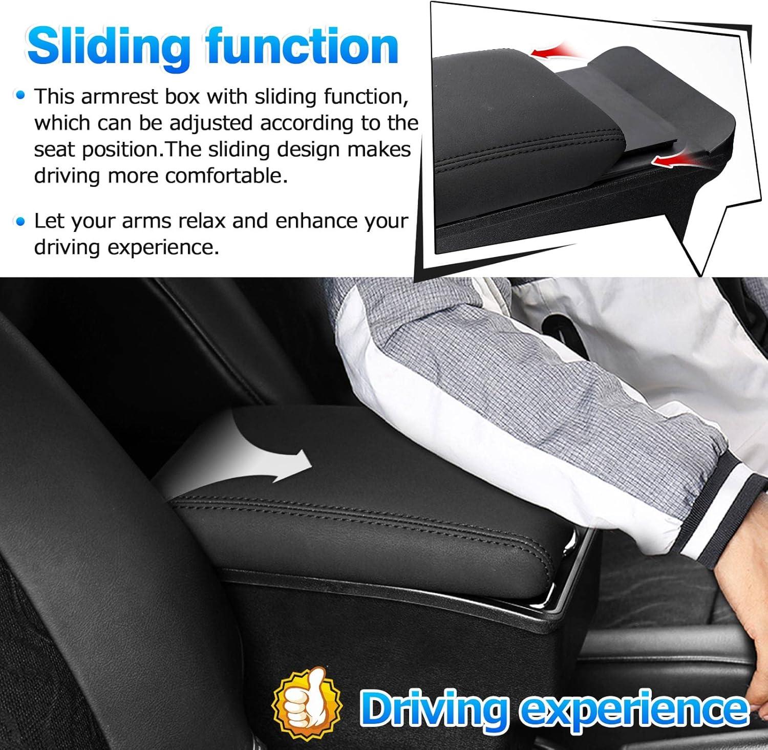 More comfortable—This armrest box with sliding function,which can be adjusted according to the seat position.And the top of this armrest box is made of soft leather, which can support the arm better during driving and relieve arm fatigue and pain.Let your arms relax and enhance your driving experience.
