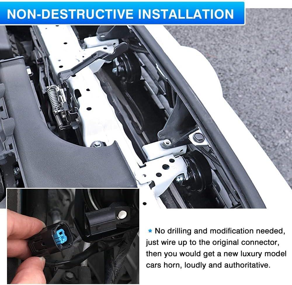 【Easy to Install】No drilling and modification needed, just wire up to the original connector, then you would get a new luxury model cars horn, loudly and authoritative.