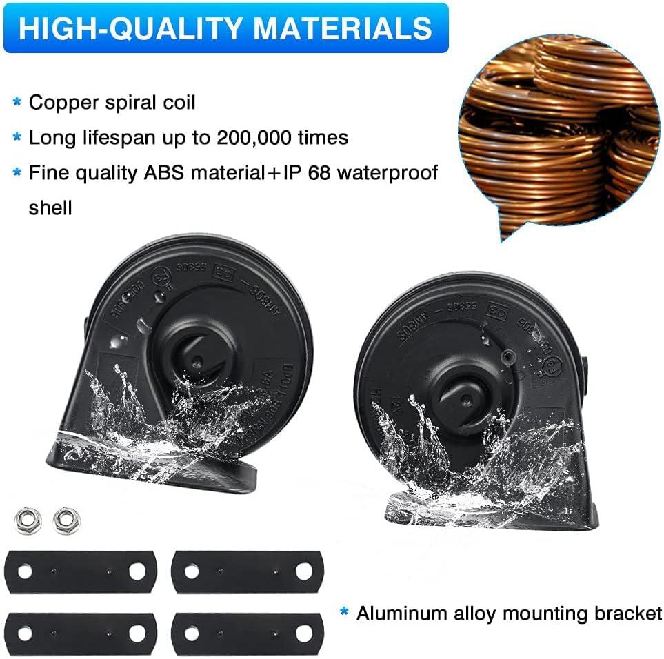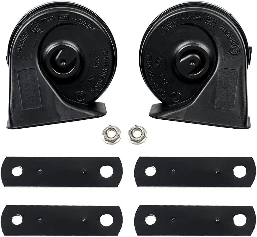 【Duo-Tone horns】These auto horns use 12V power supply, low power consumption, high performance. Features duo-tone of high tone 510 Hz/low tone 410 Hz, pronounce bright and pleasing. Make your horn go from a “bi bi bi” to a “BA BA BA”.