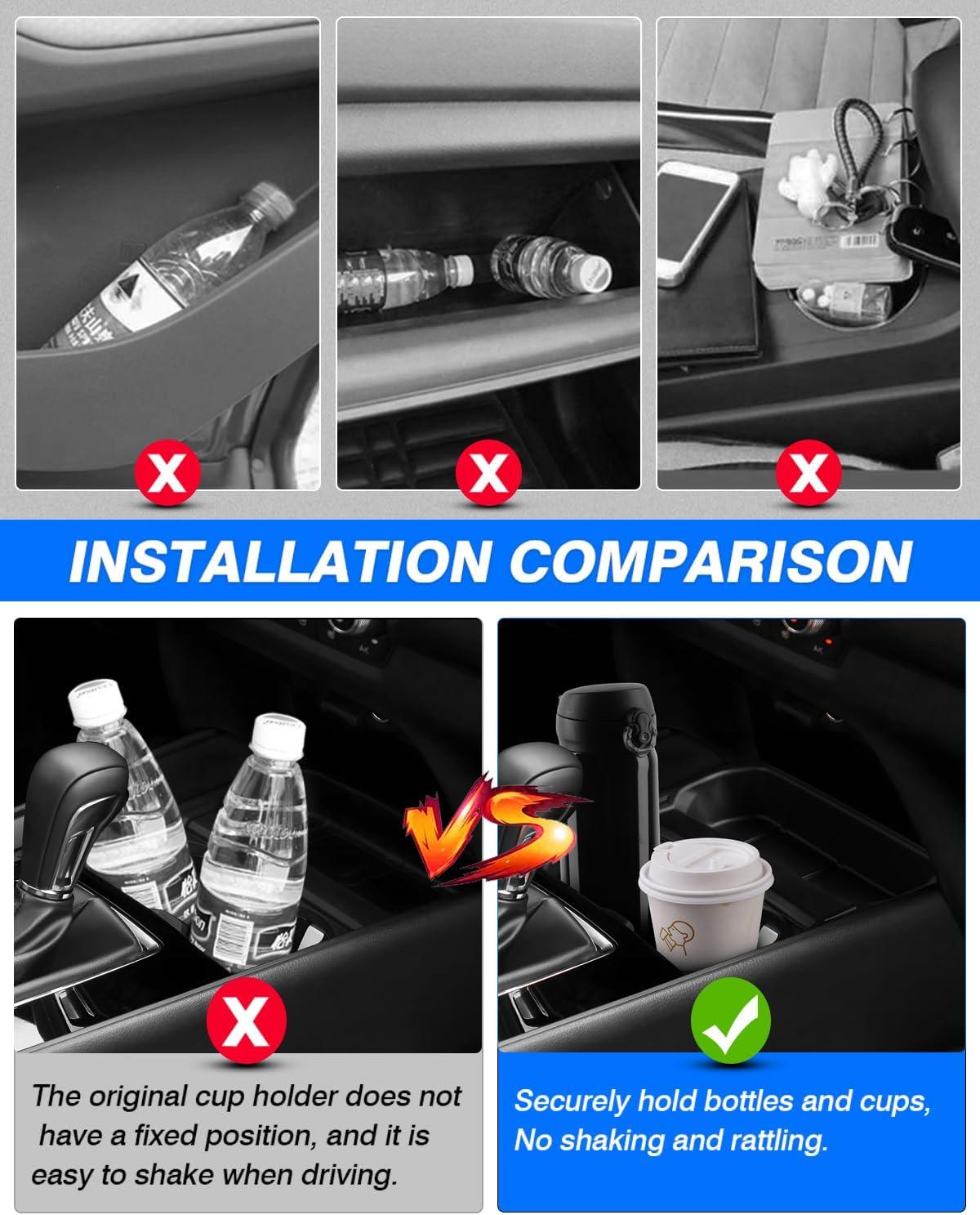 Convenient installation—No need to drill holes,the cup holder can be directly installed on the screw fixing position of the front passenger armrest. The bottom of the product is equipped with double-sided tape to fix,which can be very stable during driving.