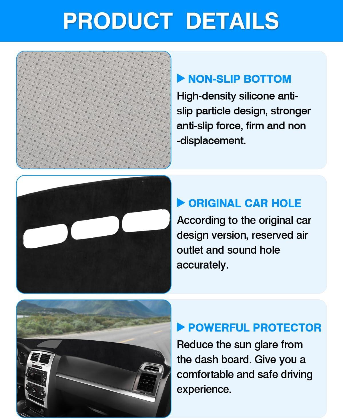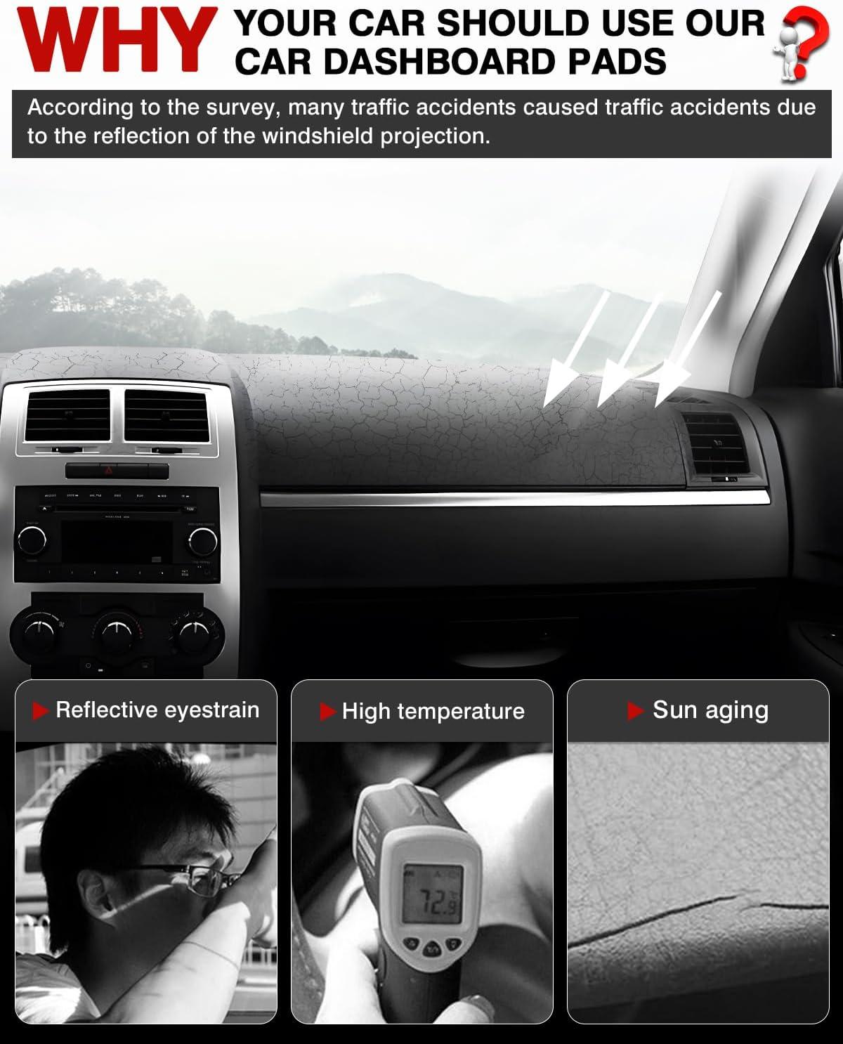 Autorder Dashboard Cover Mat for 2019-2023 2024 2025 2026 Dodge Ram 1500 2500 3500 Accessories Dash Cover Flannel Dash Mat Sunshade Glare UV Rays Protector Black(2008-2010 Dodge Charger)