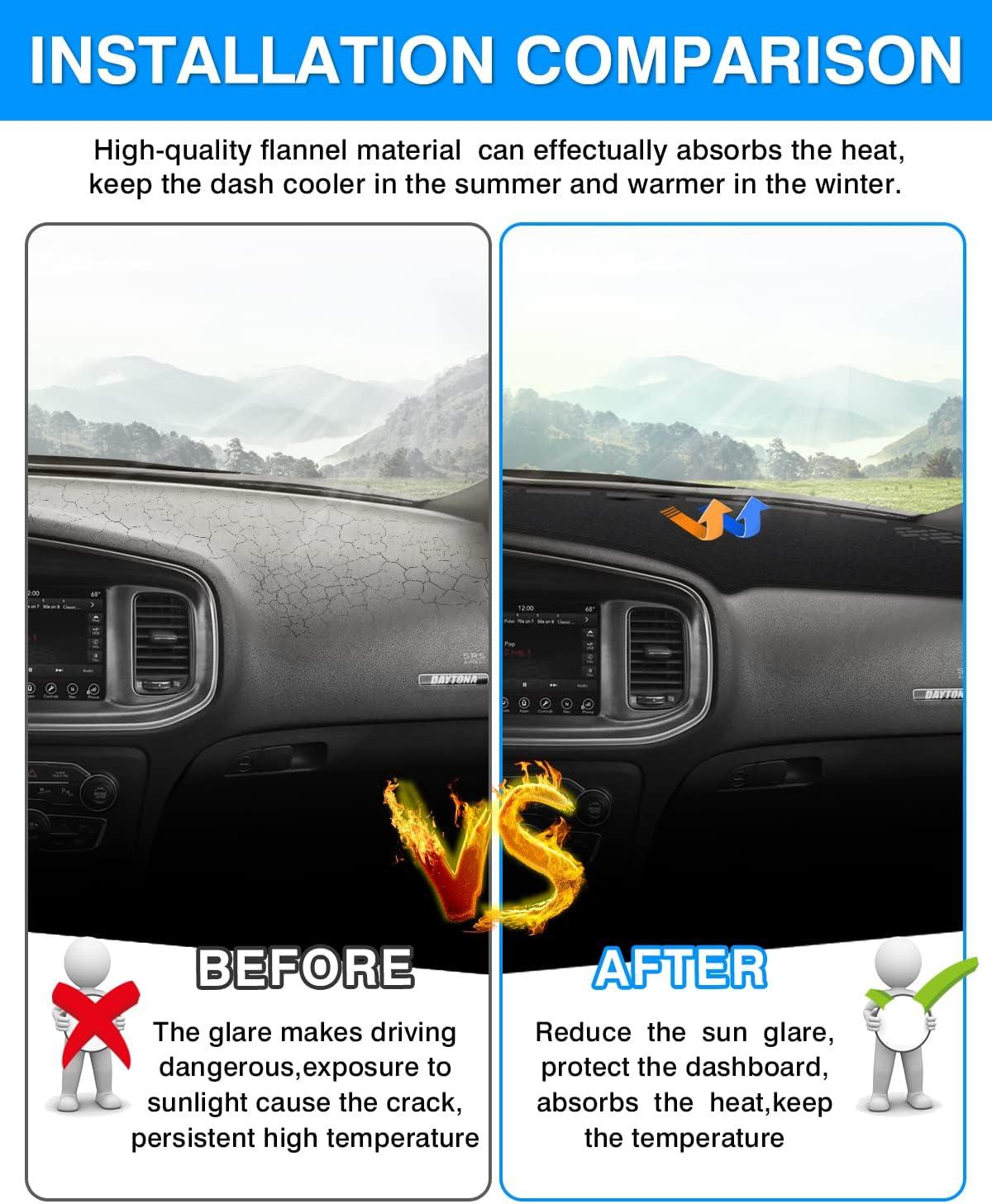 Autorder Dashboard Cover Mat for 2019-2023 2024 2025 2026 Dodge Ram 1500 2500 3500 Accessories Dash Cover Flannel Dash Mat Sunshade Glare UV Rays Protector Black(2011-2023 Dodge Charger)