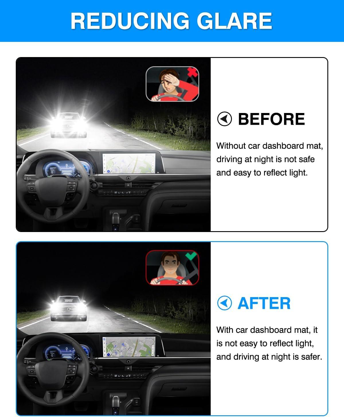Powerful Protector: Protect your dashboard from long-term sun exposure and UV rays, which may lead to cracking, discoloration, and warping. Autorder dash cover can help reduce sun glare from the dashboard and keep it looking brand-new. Giving you a comfortable and safe driving experience.