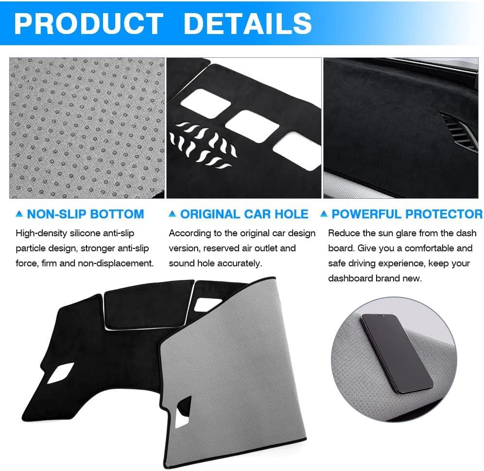 Premium Flannel: Our dash mat is made of high-quality flannel fabric, which is light and soft and resistant to distorting, fading, and wrinkles. The thick black fluff layer effectively absorbs heat, keeping the dash cooler in the summer and warmer in the winter.