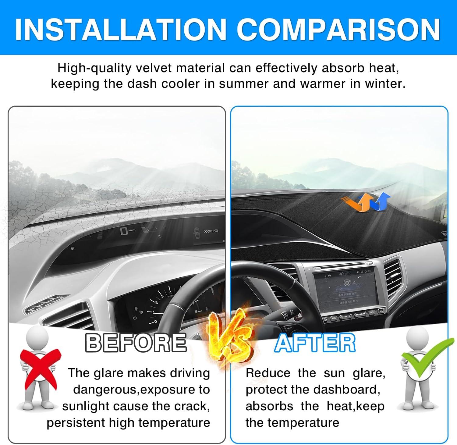 Easy Installation: No adhesives required.Just place the dash cover straight on top of the dashboard and it won't move
