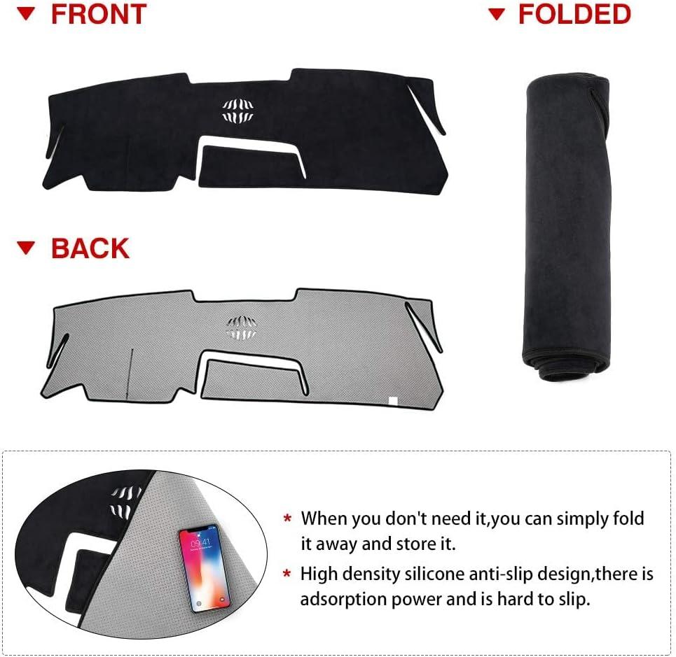 Premium Flannel: Our dash mat is made of high-quality flannel fabric, which is light and soft and resistant to distorting, fading, and wrinkles. The thick black fluff layer winter effectively absorbs heat, keeping the dash cooler in the summer and warmer in the winter