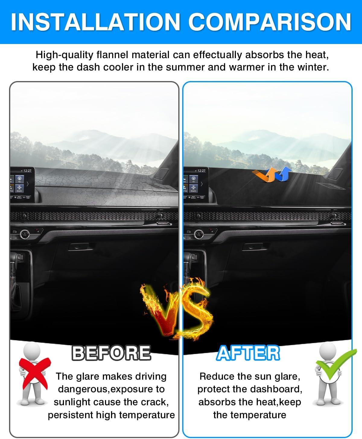 Easy Installation: No adhesives required.Just place the dash cover straight on top of the dashboard and it won't move
