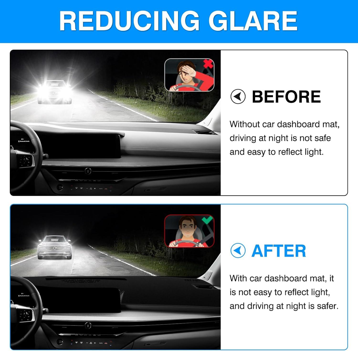 Powerful Protector: Protect your dashboard from long-term sun exposure and UV rays, which may lead to cracking, discoloration, and warping. Autorder dash cover can help reduce sun glare from the dashboard and keep it looking brand-new. Giving you a comfortable and safe driving experience