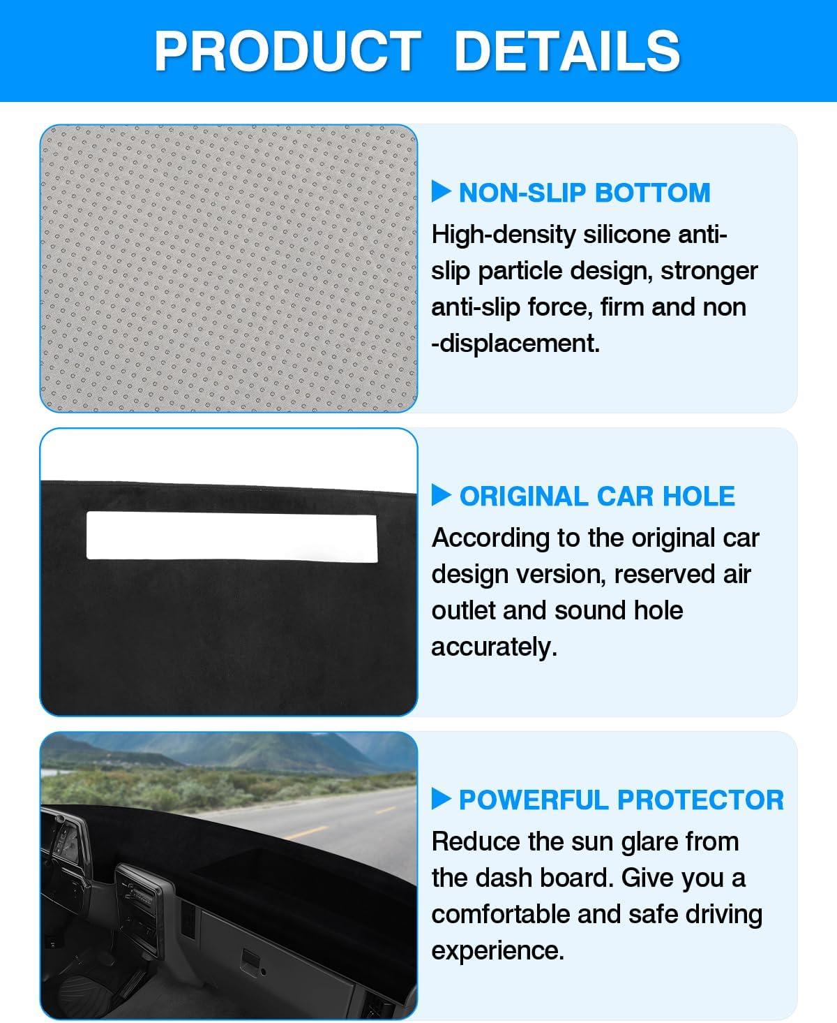 Autorder Dashboard Cover Mat for 2020-2024 2025 2026 Ford Explorer Accessories Dash Cover Flannel Dash Mat Sunshade Glare UV Rays Protector(1987-1991 F150 F250 F350)