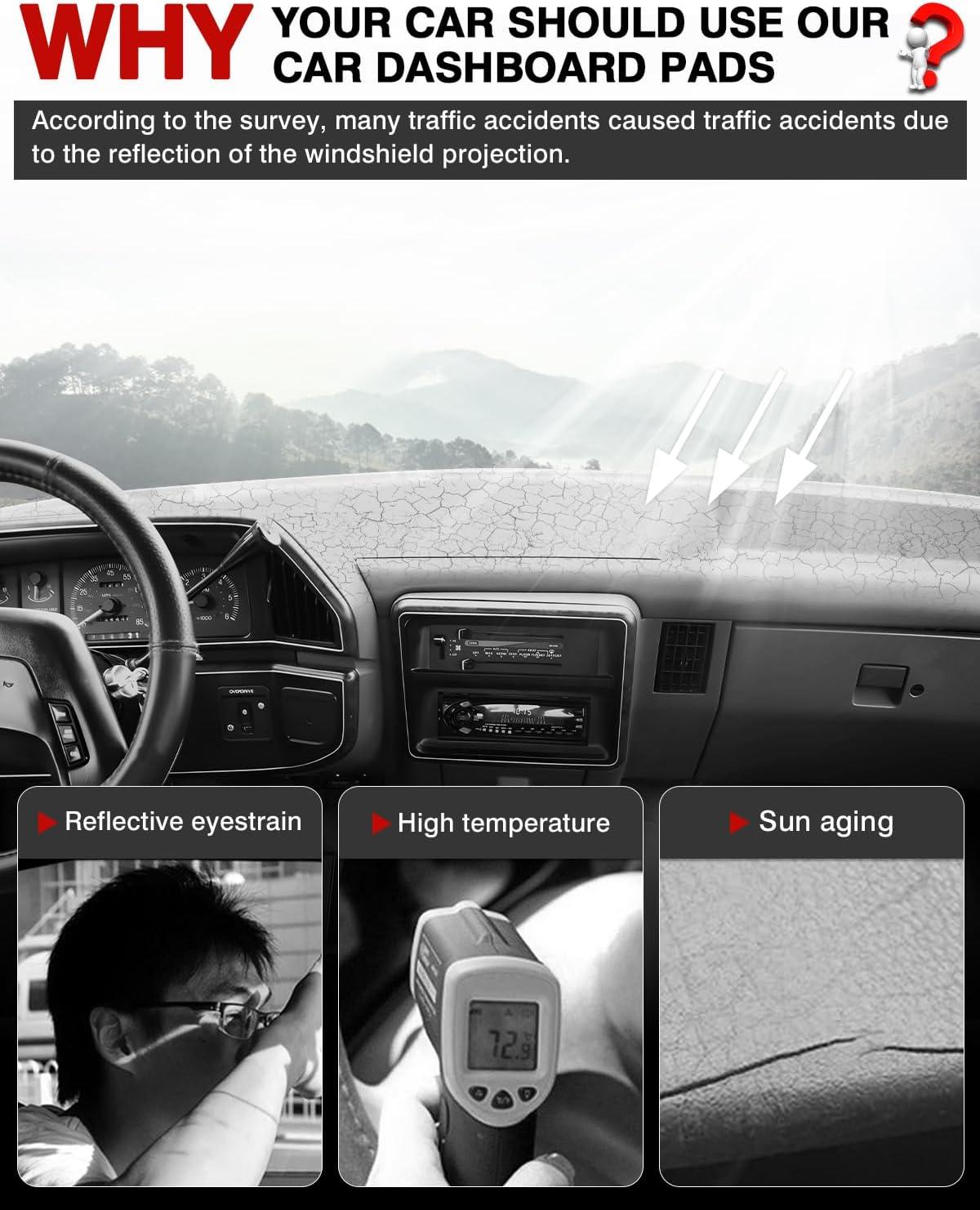 Powerful Protector: Protect your dashboard from long-term sun exposure and UV rays, which may lead to cracking, discoloration, and warping. Autorder dash cover can help reduce sun glare from the dashboard and keep it looking brand-new. Giving you a comfortable and safe driving experience.