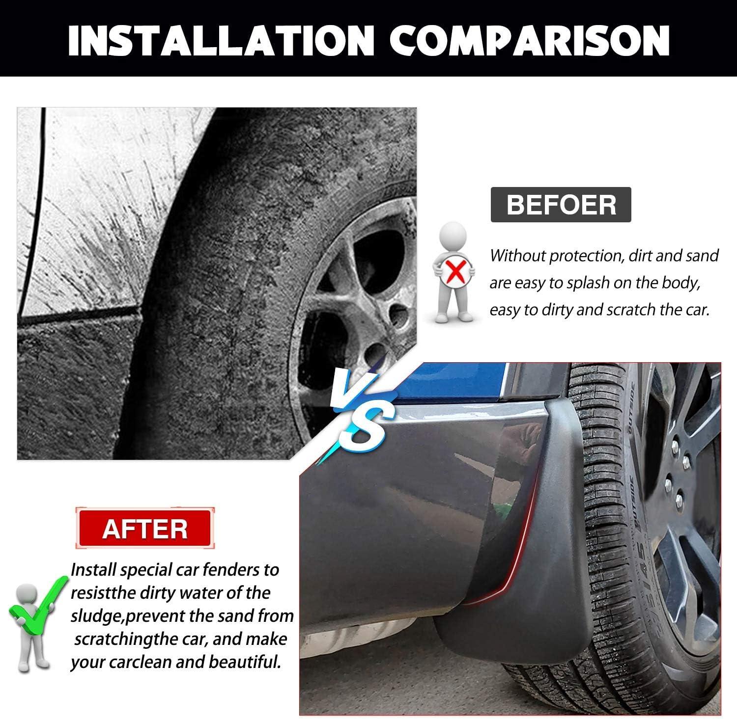 Impact-resistant: Unlike cheap hard plastic mud guard, ours offer a perfect balance of softness and super thickness. They are capable of maintaining their shape even at high speeds, ensuring long-lasting service and reliable performance. Provide the ultimate protection for your vehicle.