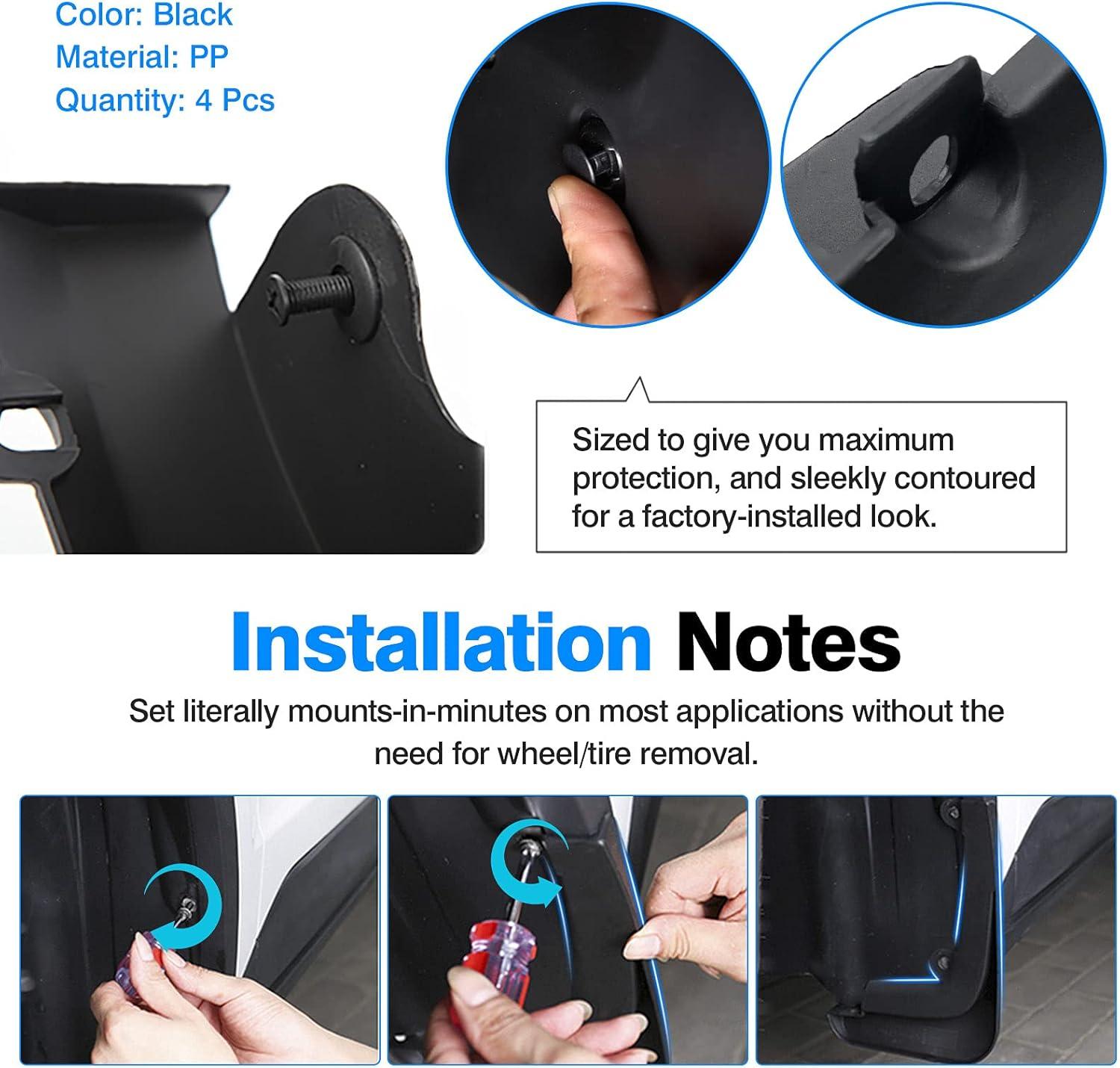 Impact-resistant: Unlike cheap hard plastic mud guard, ours offer a perfect balance of softness and super thickness. They are capable of maintaining their shape even at high speeds, ensuring long-lasting service and reliable performance. Provide the ultimate protection for your vehicle.